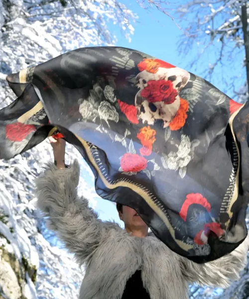 «I believe that each scarf worn, has the combined energy of my creations and that of the person wearing it.» Myriam