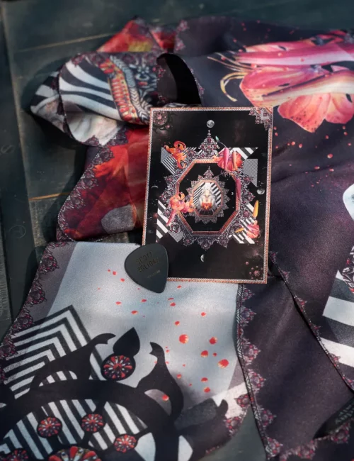 Dadadésir goes beyond scarves to explore various fields, from textiles to fashion, with accessories such as wallpaper, jacket linings and guitar cases. Dada’s Interior design world offers rugs, wall murals and cushions. In art direction, Dadadésir ensures visual coherence across all projects. Versatile and innovative, the brand expresses a strong creative identity, well beyond trends.