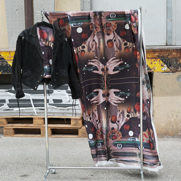 The lined jacket shown is a styling simulation using a Dadadésir scarf. Our scarves are not suitable for use as linings due to different inks and printing processes.